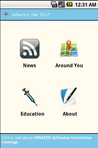 'Where's the Flu?' is an Android application developed by Jason Wei for the CDC Flu Application Challenge.