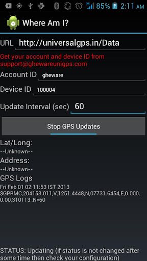 This application updates mobile location to any OpenGTS server using gprmc protocol string via web url.
