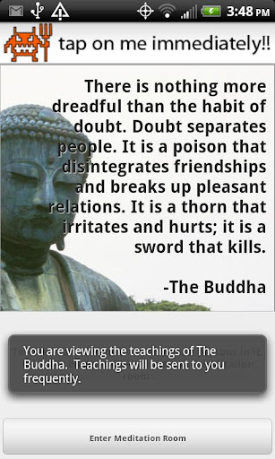 Let Whisper: Buddha help remind you to live your day with intentionality. The app will occasionally interrupt your day with a meditation or quote from The Buddha. The frequency of notifications can be set from low (once every few days) to very high (once every one to two hours). If you wish, discuss the current meditation in the meditation room with others.