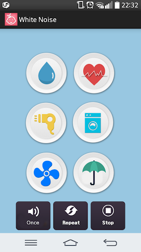 1. Application includes 6 sound that is white noise.(water, heart, fan, dryer, washer, cleaner)