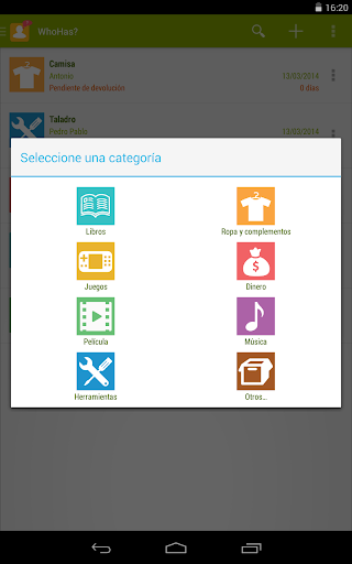 WhoHas? es una herramienta que te permitirá mantener localizados todos tus préstamos. Se organiza por categorías para que puedas localizar rápidamente el préstamo que realizaste. O si lo prefieres, también dispone de una funcionalidad de búsqueda para localizarlo de una forma rápida y sencilla.