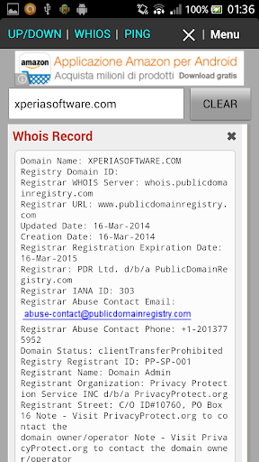 Attenzione: se il sito di cui state cercando di rilevare lo stato ha un redirect il risultato potrebbe essere falsato. Per ottenere dati esatti e professionali anche di fronte a redirect si consiglia di scaricare la versione pro di Whois Lite.