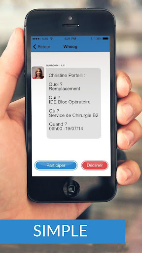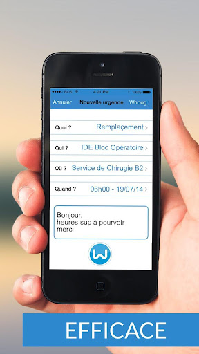 Whoog est une plateforme mobile professionnelle qui vous permet de contacter et de coordonner vos équipes pour répondre à un imprévu. La prise de contact se fait en quelques clics. Les membres de vos équipes sont contactés sur la base de critères liés à leurs compétences et leurs disponibilités. Les réponses sont synchronisées et les participants sont notifiés lorsqu’un poste est pourvu. L’ensemble des informations est stocké dans le back office permettant un retour d’expérience qualitatif et quantitatif.