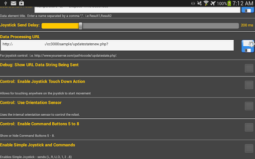 - When using the joystick or command buttons in WiFi Bot Control, the app will send a URL string through a web component to a user customizable URL defined in the app. A php file will update the json file with the updates motor / command instructions. The Arduino, via the WiFi module, calls on a php file to parse the json file and return the values it needs. It then processes this data to command the robot.