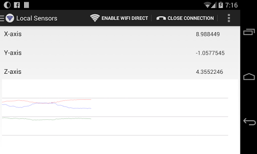 An application that enables streaming of the accelerometer sensor's data between two Wi-Fi Direct enables devices.