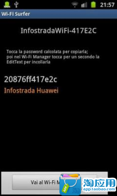 此应用程序计算Fastweb和电信的Wi-Fi调制解调器提供的默认密码。