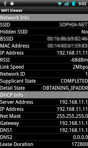 また、WiFi APに接続されている時の詳細情報を表示します。