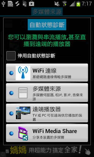“WiFi多媒體瀏覽器” - 您額外需安裝, 以幫助共享與串流存取別人SD卡分享中的多媒體。