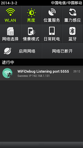 3、查看通知栏当通知栏提示IP地址的时候即可执行PC端的操作。比如提示:Success:IP 192.168.1.131