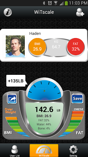 WiTscale is a Bluetooth 4.0 enabled digital body (fat) scale that enables you to monitor and keep tracking your fitness on the go by recording and archiving your weight and Body Mass Index on your personal Smartphone.With 3.5 inches backlit LCD, smart power saving, wireless data record and lightweight features.