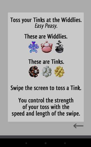 Widdly Tinks is a simple, physics-based arcade game. You score points by tossing your Tinks onto wobbling, tipping, and swinging targets.