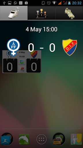 Du ser resultatet av matcherna i ditt favoritlag (AIK, Åtvidabergs FF, BK Häcken, Djurgårdens IF, Falkenbergs FF, Gefle IF, GIF Sundsvall, Halmstads BK, Hammarby IF, Helsingborgs IF, IF Elfsborg, IFK Göteborg, IFK Norrköping, Kalmar FF, Malmö FF, Örebro SK), lägga till valfritt antal widgets som du vill.