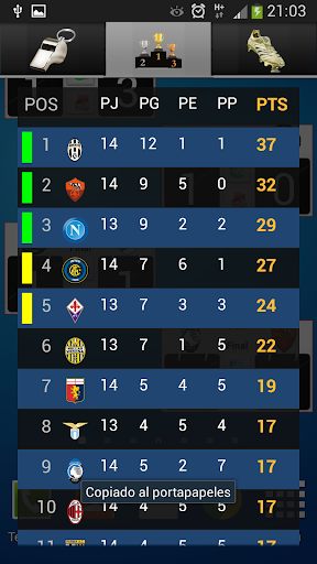 Verás el resultado de los partidos de tus equipos favoritos (Milan, Juventus, Inter, Roma, Lazio, Parma, Fiorentina, Sampdoria, Napoli, Livorno, Udinese, Torino, Sassuolo, Hellas Verona, Genoa, Chievo Verona, Catania, Cagliari, Bologna, Atalanta) Chievo Verona, Catania, Cagliari, Bologna, Atalanta), añade tantos widgets como quieras.