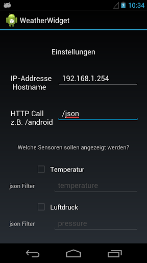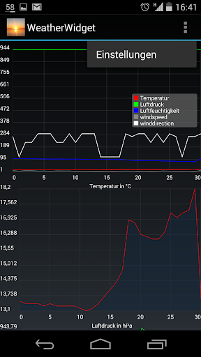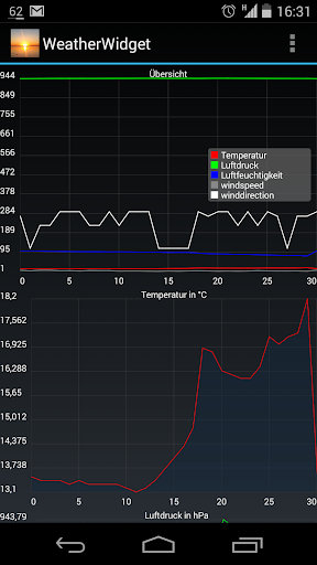 Mit dieser App/diesem Widget ist es möglich, die Messwerte der Arduino-Wetterstation zu empfangen und graphisch aufzubereiten. Ist die Wetterstation über das Internet erreichbar, funktioniert dies von überall auf der Welt wo ein Internetzugang vorhanden ist.