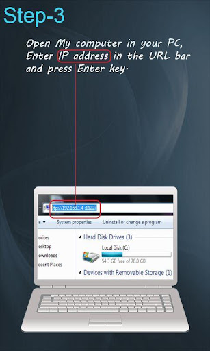 • Copy and paste the URL noticed into FTP Client or Windows explorer, then you scan and manage files