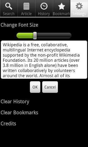 This free version comes with the top 2 million english wikipedia articles (about half the total number). Needs 3.6 GB space on your device to install.