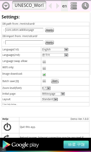 ** This app is vulnerable to any unpredictable structural changes of wikivoyage document. In fatal cases, you may see blank pages for new page loading. In this case, please email me as soon as possible. (Any already saved pages will be intact.)