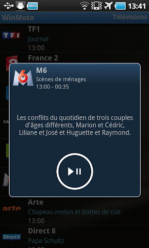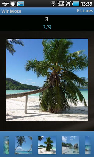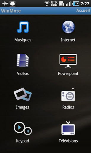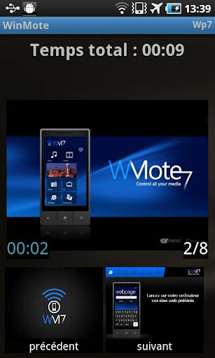 WinMote is a remote control application developed by Adeneo Embedded that allows you controlling various media on your Windows 7 PC via your Android device. This application requires you to install our WinMote Server on your computer. more info for downloading the WinMote Server is provided inside the about box of the application. With this application, you can control your browser to access web sites, launch and control videos stored on your PC, view and browse your pictures, control your music on your PC, launch Freebox TV or radio channel on your PC, Control and view PowerPoint presentations. A trial version allowing evaluation of the pictures' feature is available for free.