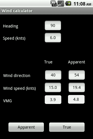 Beaufort scale with descriptions of wind and sea state, wave heights and conversion from knots to km/h, mph and m/s. Also a calculator to calculate true or apparent wind.
