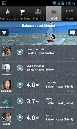 - All your Favorite spots @ one glance – see average, individual SAIL size, board size