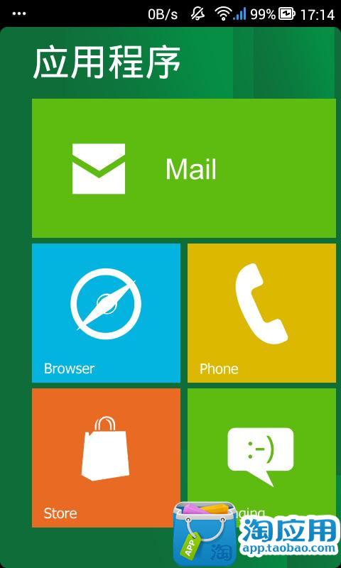 你可以选择使用默认的桌面,或者是选择这款超炫的win8 桌面,你可以在上面添加你喜欢的或者是常用的主程序在你的桌面上,如浏览器、电话、邮件、和消息,也可以添加文件夹等等,自定义,随你喜欢