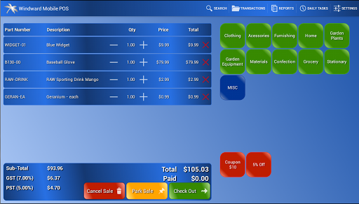 Try Windward Mobile POS today for free and see how you can speed up your point of sale lines with your mobile devices. It works offline so wifi, cloud technology or access or a cellular plan is NOT required. It works with Samsung S3, Google Nexus 10" and other similar mobile devices.