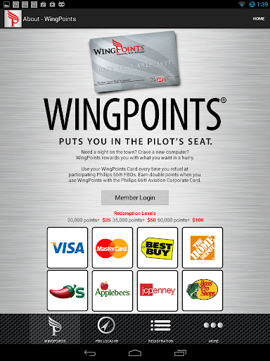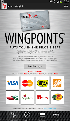 In the air and on the go, you can stay on top of your WingPoints® rewards with the WingPoints app from Phillips 66® Aviation. This dynamic app keeps track of your transactions as well as the number of WingPoints earned every time you refuel at a participating FBO. Plus, the handy FBO locator enables you to find Phillips 66 Aviation operations across the country, along with information for each FBO location.