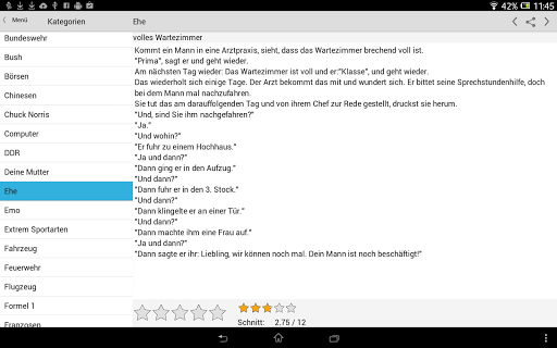 Witze-Droid Pro enthält etwa 10'000 Witzen in verschiedenen Kategorien.