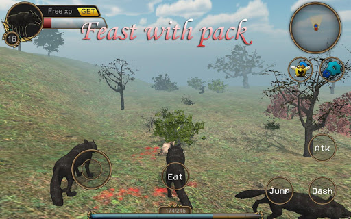Start as young lone wild wolf, hunt prey like rabbit or deer, eat, drink, grow up, start own pack, survive in the wilderness and rule forest with wolfs mates!
