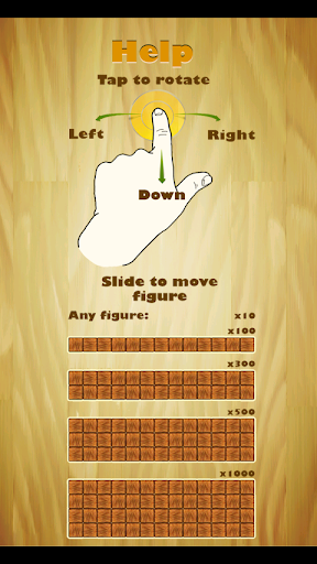 Play our Wooden Blocks game with excellent graphics and sounds. You may be able to get on high score list if you play well enough. Use swipes or buttons to rotate/move the blocks. To win at Wooden Blocks rotate and pile the blocks while fitting them together with no empty spaces. Then you fill a row it will disappear. The game is over when the blocks fill the game to the top in game.