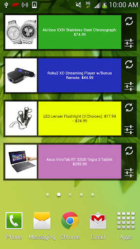 Are you a frequent visitor of Woot!, the popular deal site? Woot! is a site which (usually) features one deal per day. Check deals on woot.com with a simple glance to your home screen! The widget displays daily deals directly to your launcher.