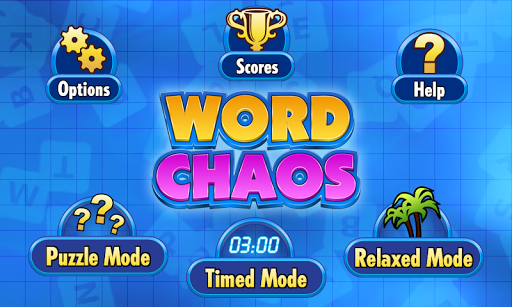Word Chaos is a challenging word game that puts your word skills to the test. The object of the game is to form words from a given set of letters. There are three different game modes. In Puzzle Mode you must find all possible words that can be formed from the letters provided, in Timed Mode you must find a specific word within the given time limit and in Relaxed Mode you can play without a time limit.