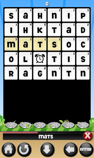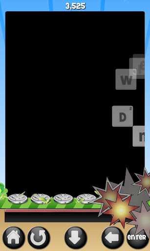 It’s a race against the clock to create as many words as possible with the given letters - tap away at the letter tiles to create any word 3 - 12 letters in length. Letter tiles used in valid words will disappear, and the tiles will slide up. Once a letter tile reaches a landmine, KABOOM! Game Over. Strategy will be required in order to keep the colored tiles from reaching the bottom, so be aware of your remaining letters… and of course, the ever ticking clock! Once the time runs out, a row of fresh tiles is added to the board. You can also add a row of letters by tapping the drop button.