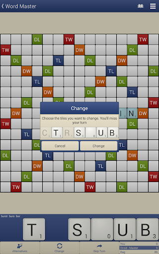 • After each turn, discover which words you could have played in order to improve your performance. Learn how to use the bonus squares on the board and the standards for the formation of words. Enrich your vocabulary.