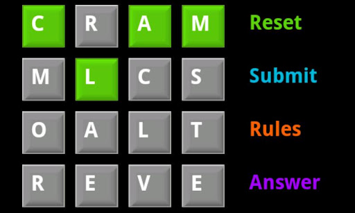 Solve the word matrix by creating 4 four letter words without re-using any tiles. Finding a few words is easy, but the challenge lies in finding the right combination of four words to solve the puzzle!