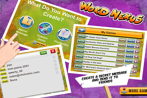 --> Secret Message – create a Secret Message or Word List, play it yourself or send it to your friends. They have to play the game to reveal the message.