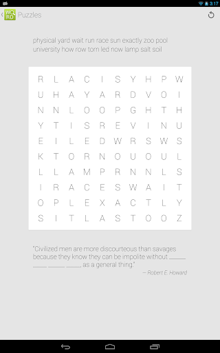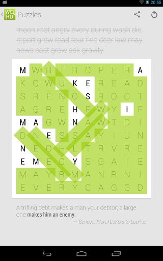 Word Search is a crossword puzzle game where you search for words hidden in the letter grid.