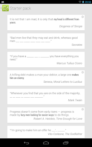 Find words and eliminate them from the letter square. Letters that remain in the square will spell out the remaining words of a famous quote.