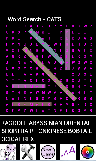 Unlike lots of other word search games out there our words are placed in a random order giving limitless combinations - you'll never see the same words in the same place no matter how often you play.