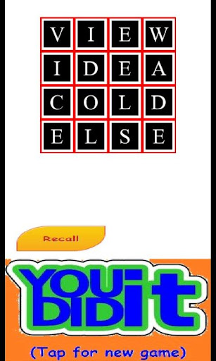 WordSudoku is an entirely, radical word/puzzle game that I invented. Summed up in one line, it's a crossword without any black boxes. You will have a 3x3 or 4x4 grid with certain letters fixed inside them. You will also have some other letters with which to fill the grid so that each row and each column forms a legitimate English word.