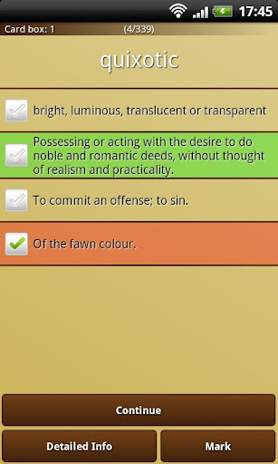 - Learning Mode (flashcard, card index system)