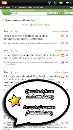 - Find example of sentences of the words you look up in the dictionary. (requires an internet connection)