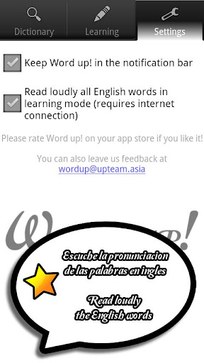 - Read loudly the English words, to learn their pronunciation. (requires an internet connection as we use an online Text To Speech engine)