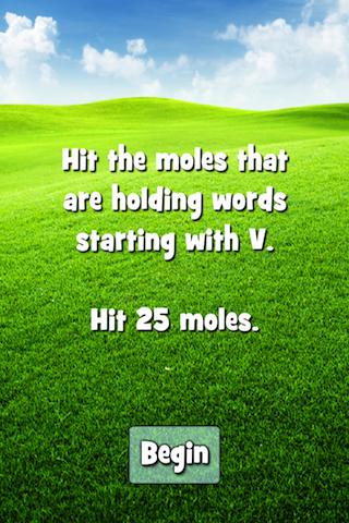 There are 10 levels to go through and each one is harder than the last. Whack moles holding words that start with a particular letter, ones that are holding words of a particular length and even moles that are holding verbs and nouns.