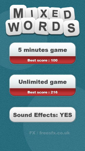 As part of timed 5 minutes: find the most words mixed before time runs out. End of the game you can share your score on your Facebook wall.