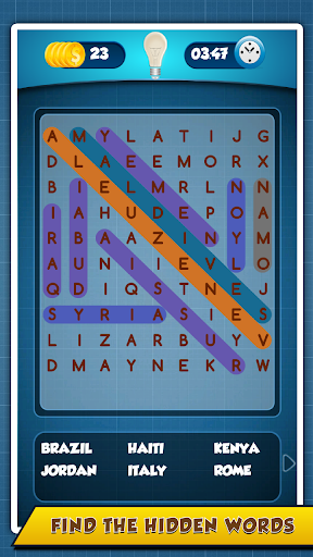 2. Word Search: Your goal is to find all the hidden words inside the grid. Hidden words can be in any orientation- up, down, left, right, or diagonally but straight. Select from number of different categories:Hollywood, Kids, Dictionary, Music, Places or Personalities. Play now your favorite one!