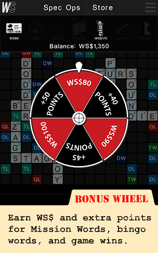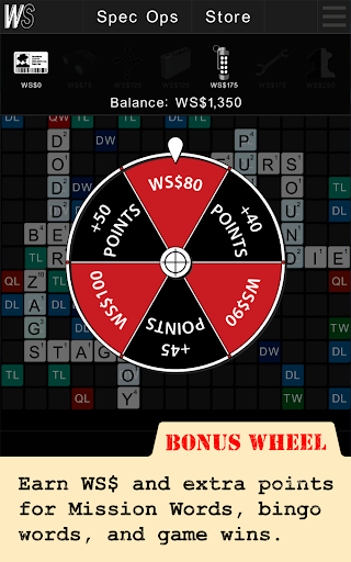 Play against 2-4 friends per game, and play up to 30 games simultaneously. Pick standard placement of multipliers or random placement of multipliers. Choose the time limit and word guess limit per turn. Win games and play Mission Words to spin Bonus Wheels.