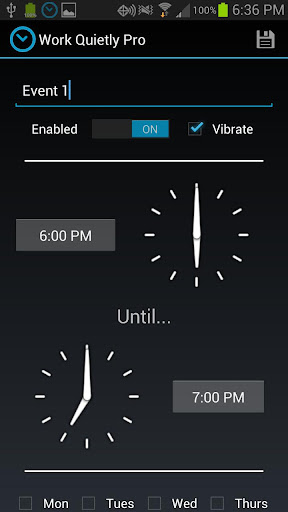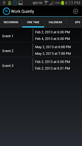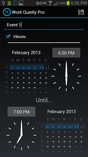 This application enables the phone to automatically go to vibrate or silent ringer modes. Use pre-programmed quiet times using recurring, one time, calendar or GPS based events. Also has features to quickly go quiet for a set period of time for going to the movies, will lock your volume from accidentally changing unless you want it to and add a contact to your whitelist so that the phone will ring even if it is in a quiet period.