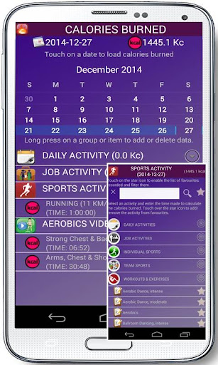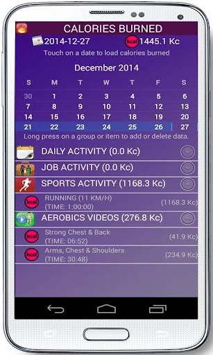 - Calories burned: there is a list of activities and exercises to tell you the calories you burn or you can add yourself the calories burned. Everything will be recorded in a diary.