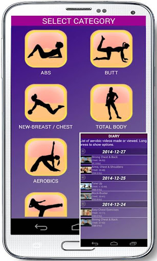 4. You can enter the calories you burn exercising with the workouts videos of the app. You will find a diary of each video made with the calories burned. There are 8 categories of videos with exercises: